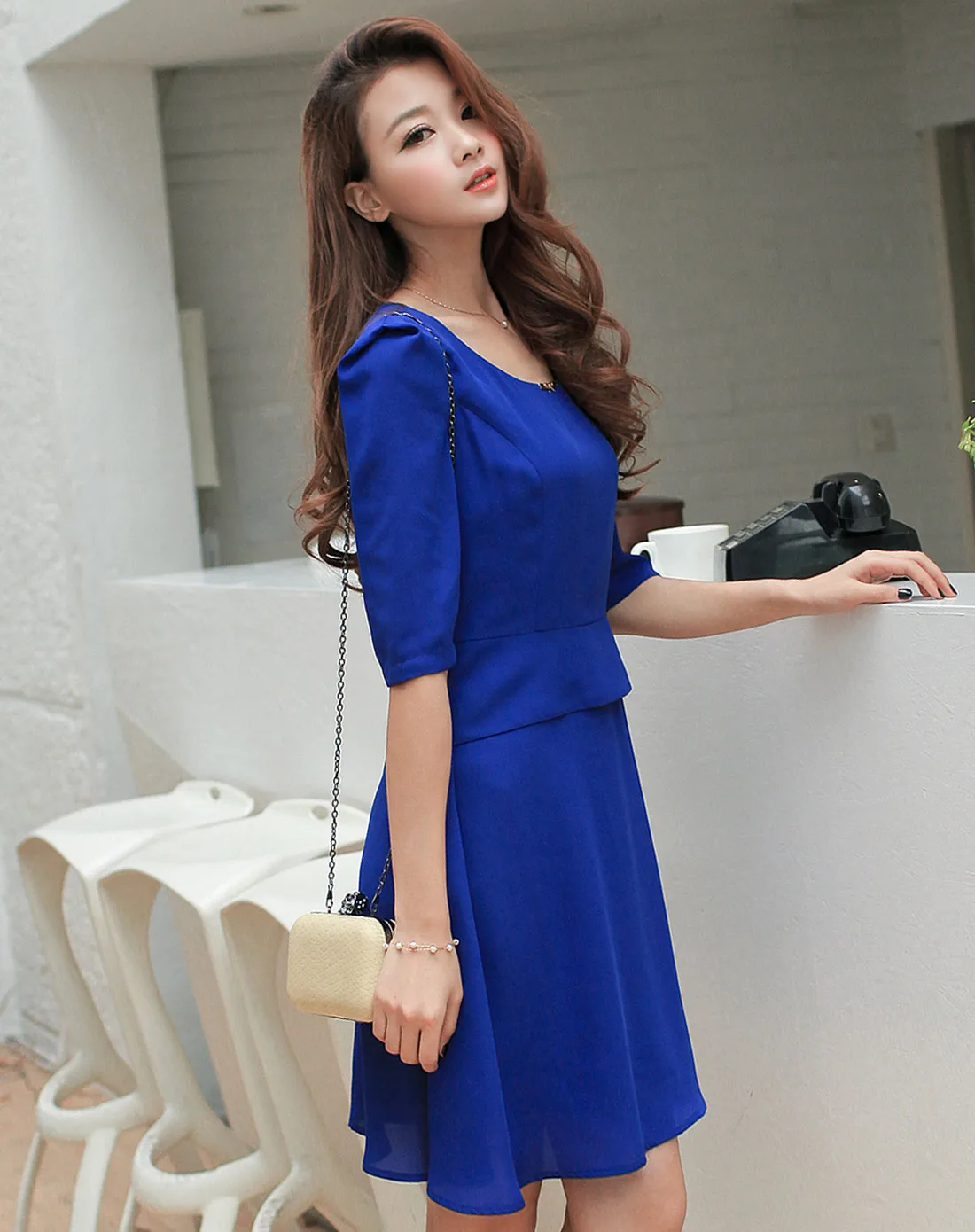 Qual é o comprimento mais adequado para o vestido azul royal?